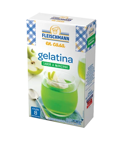 Productos Home Gelatina Gelatina Manzana light Polvo para preparar postre de gelatina dietético de bajo contenido calórico sabor a manzana.Formato : 25 gr Valores nutricionales Descubrí otros productos