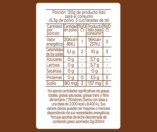 Productos Home Postres Postre Vainilla Light Polvo para preparar postre dietético de bajo contenido calórico sabor a vainilla.Formato : 50 gr Valores nutricionales Descubrí otros productos